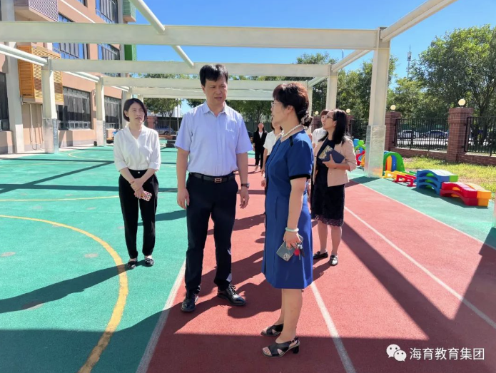 2023年8月22日上午,海淀區(qū)教委副主任胡劍光帶隊(duì)蒞臨海育幼兒園永靚分園調(diào)研開園籌備情況。海國幼教副總經(jīng)理兼總園長(zhǎng)巨光玲,督導(dǎo)園長(zhǎng)李鳳霞,永靚園執(zhí)行園長(zhǎng)李江華等參加。