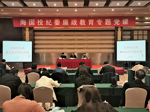 為認(rèn)真落實(shí)區(qū)紀(jì)委區(qū)監(jiān)委2020年“旗幟領(lǐng)航 紀(jì)律護(hù)航”廉政教育月活動(dòng),11月19日海國(guó)投公司紀(jì)委舉辦廉政教育專題黨課。公司黨委書記、董事長(zhǎng)林屹進(jìn)行授課,公司紀(jì)委書記要潤(rùn)生主持會(huì)議,公司紀(jì)委委員、系統(tǒng)各基層黨組織書記、紀(jì)檢委員、下屬企業(yè)黨風(fēng)政風(fēng)監(jiān)督員共計(jì)40余人參加。