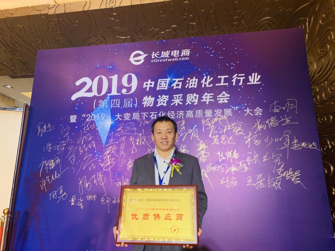 11月7-8日,2019(第四屆)中國石油化工行業(yè)物資采購年會暨2019大變局下石化經(jīng)濟(jì)高質(zhì)量發(fā)展大會在北京召開。三聚環(huán)保榮獲2018-2019年度中國石油化工“優(yōu)質(zhì)供應(yīng)商”榮譽(yù)稱號,三聚環(huán)保市場營銷部總經(jīng)理許金林出席會議并領(lǐng)獎。