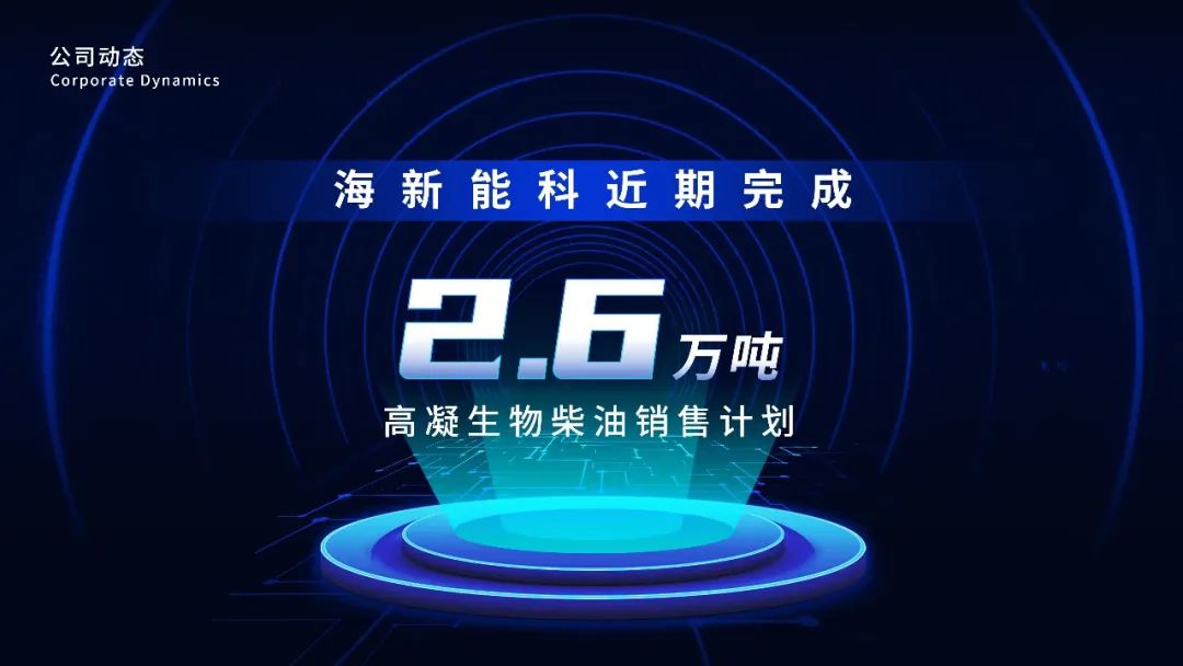 海新能科 | 海新能科近期完成2.6萬噸高凝生物柴油銷售計(jì)劃